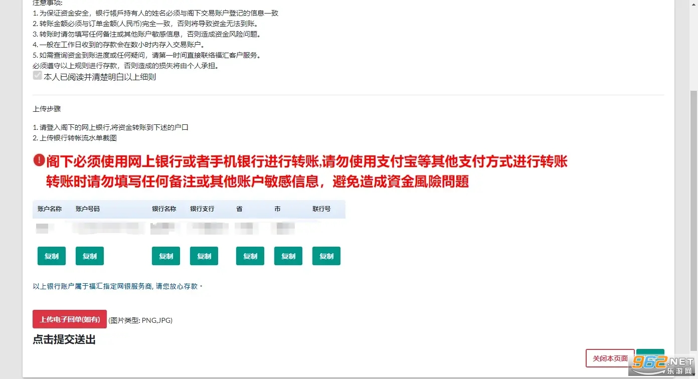 结束以上设施后,您就能够举行网银转账了。请耐心恭候资金到账,并随时体贴您的贸易账户余额转折。