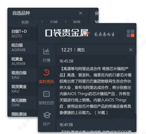 性能版的口袋贵金属填充财经日历倒计时指示,主要财经资讯不再错过。财经资讯凑集,模块隔离懂得,便于您更疾的获取资讯。