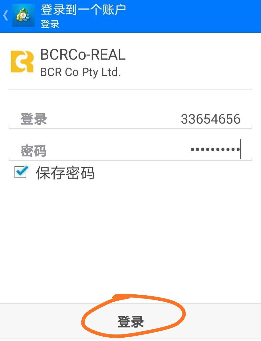 2、进入登录账户页面 , 正在寻找贸易商那里输入平台简称(这里以BCR为例) , 挑选MT4账户贸易供职器名称 , 然后输入MT4贸易账户和贸易暗码 , 勾选“留存暗码” , 再点击登录 。