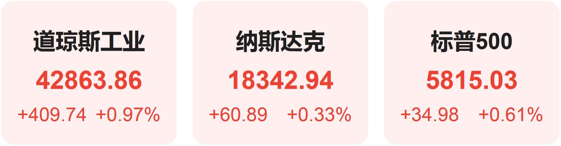 上周道指累计上涨1.21%,标普500指数上涨1.11%,纳指上涨1.13%。三大股指均为连结第五周录得涨幅。