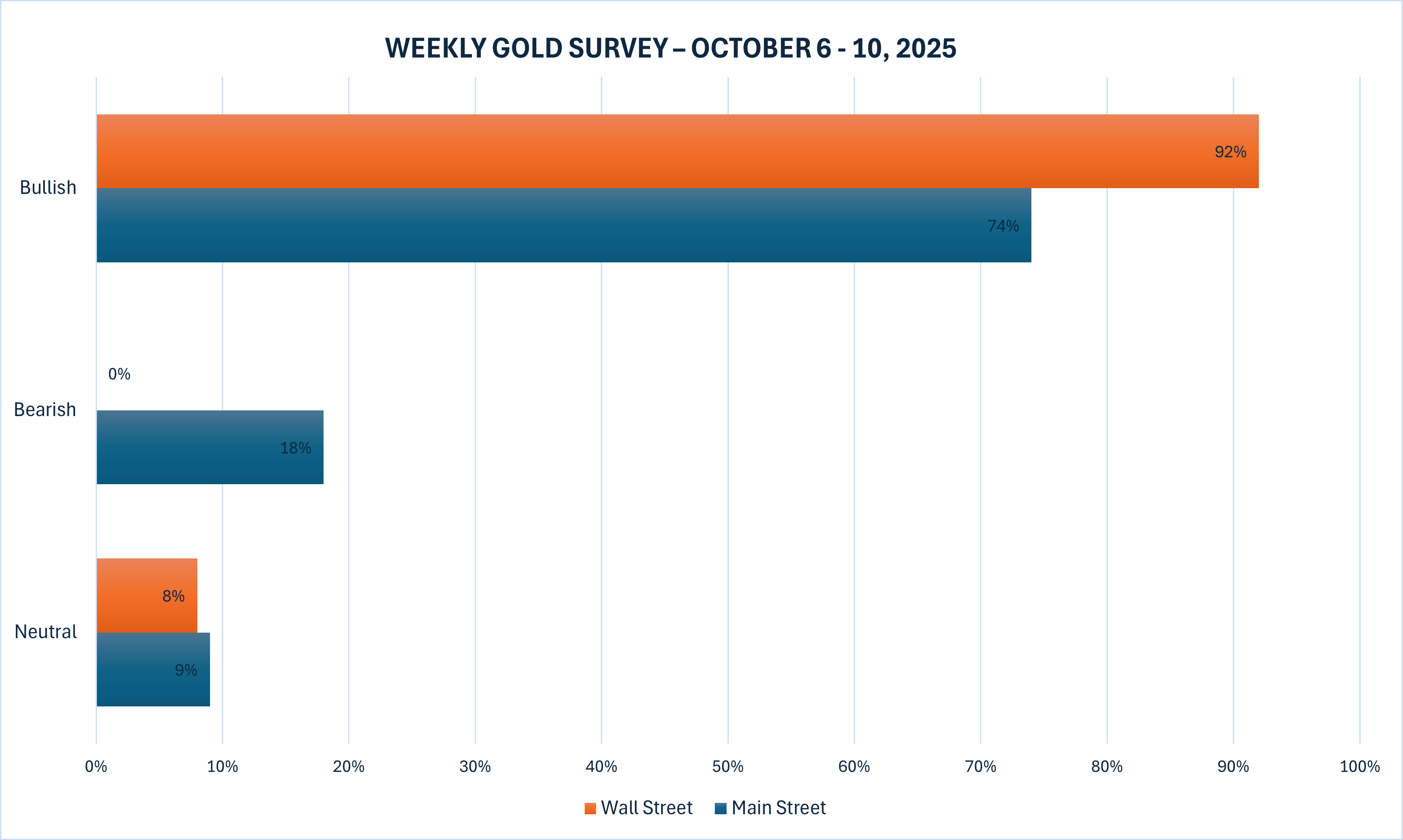 依照 Kitco News 最新每周黄金考察,华尔街仍维系高度看众立场,而大街(Main Street)投资者对此的信仰也正在逐渐追逐。班诺克本环球外汇(Bannockburn Global Forex)董事总司理 Marc Chandler(马克·钱德勒) 展现:“本周期货金属已延续第七周上涨,自七月底以还,仅有一周下跌。本次美邦政府停摆、欧洲从新调剂俄罗斯储蓄的协商,以及欧洲的羼杂战局,都有利于市集心境。”他并指出,“近期维持大致构修正在 3,800 美元左近,4,000 美元也并非遥不行及。”