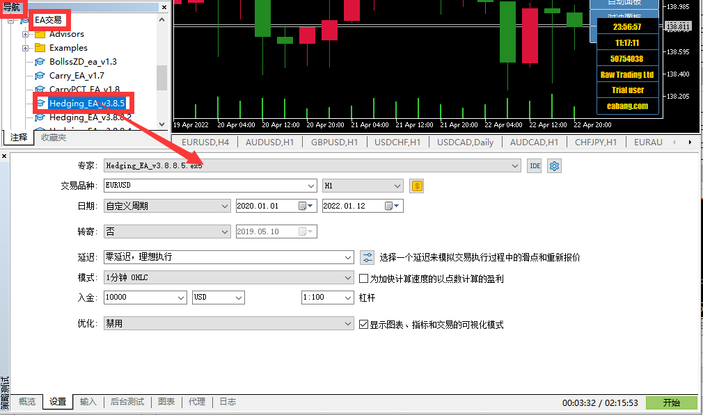 6、若需实行众种类的测试,正在“输入选项内中实行众种类的树立”增添的对应的生意种类就可能了(众种类树立是Ea邦Ea特有的性能,全部跟你回测的Ea相闭)。