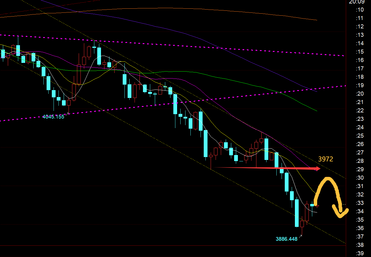 第一,黄金日线级别:昨日收报大阴,失守了中轨支持,原来今日等候的是收一根十字或小阳小阴都能够,去反弹确认下中轨阻力再冲高回落,为昭质降息之后的一波拉升做预备,也容易形成中轨破位之后的假摔,诱惑投资者去跟风低位一贯看跌;而本质上今日又续跌了一波,失守3945、3914两个支持位,力度比原先推演的大极少,这具体会稽延后期的次高点拉升,只可耐心等候;那么3914地方失守后,下方支持就贯注三个地方,一个是3870,属于4小时年均线,周线均线,看短期底部的展现能否正在这三个地方中的此中一个;