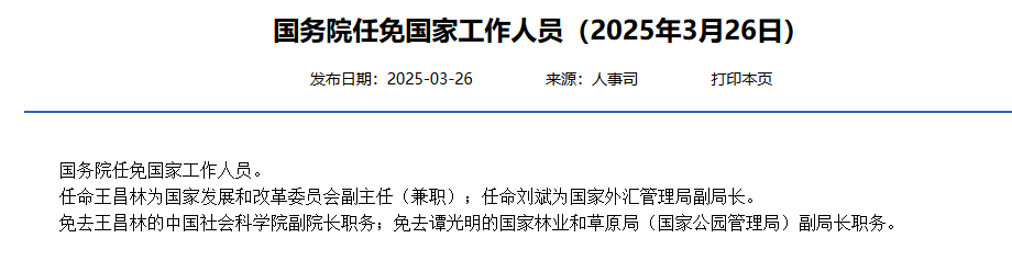 人社部网站披露国务院任免国家工作人员公告2025年9月8日中邦网财经3月26日讯 今日,人社部网站披露邦务院任免邦度使命职员布告,委用刘斌为邦度外汇治理局副局长。