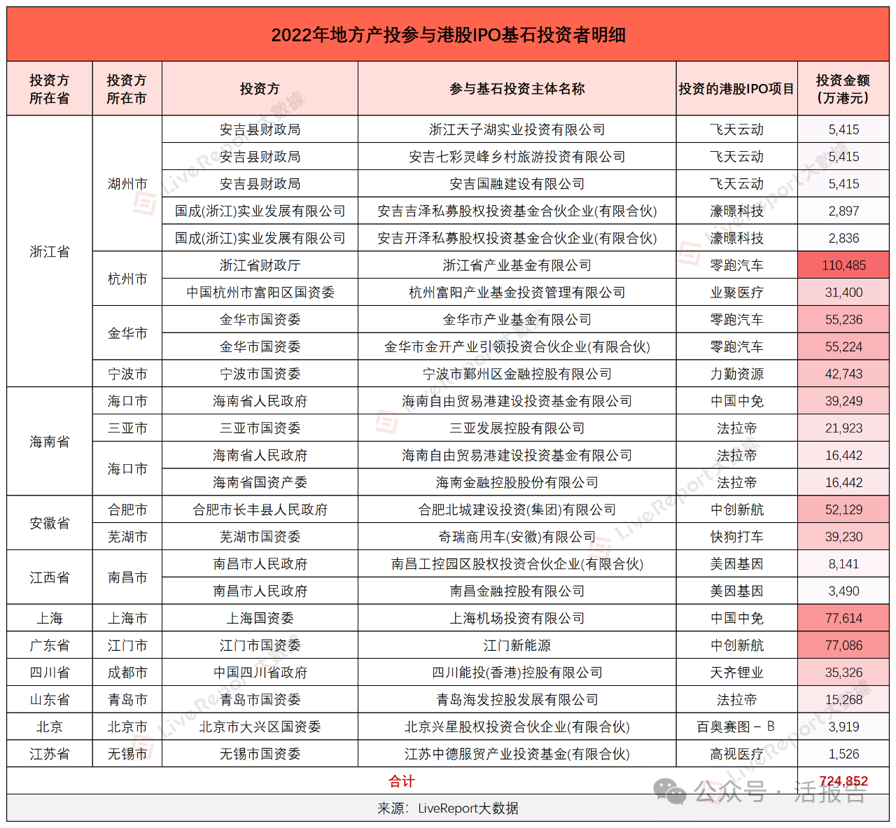 2022年的基石投资者介入港股IPO的累计投资金额约368亿港元,地方产投的投资金额约72.5亿港元,占比约19.7%。