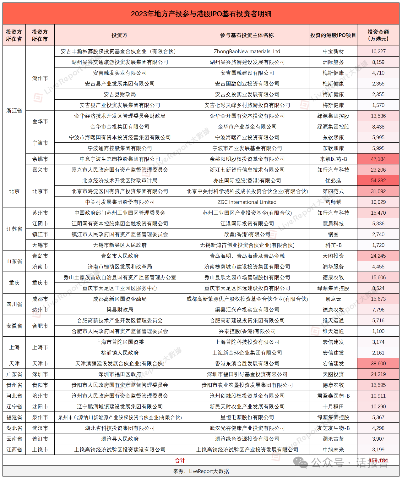 2023年基石投资者介入港股IPO的累计投资金额达154亿港元,地方产投的投资金额约46亿港元,占比约29.8%。