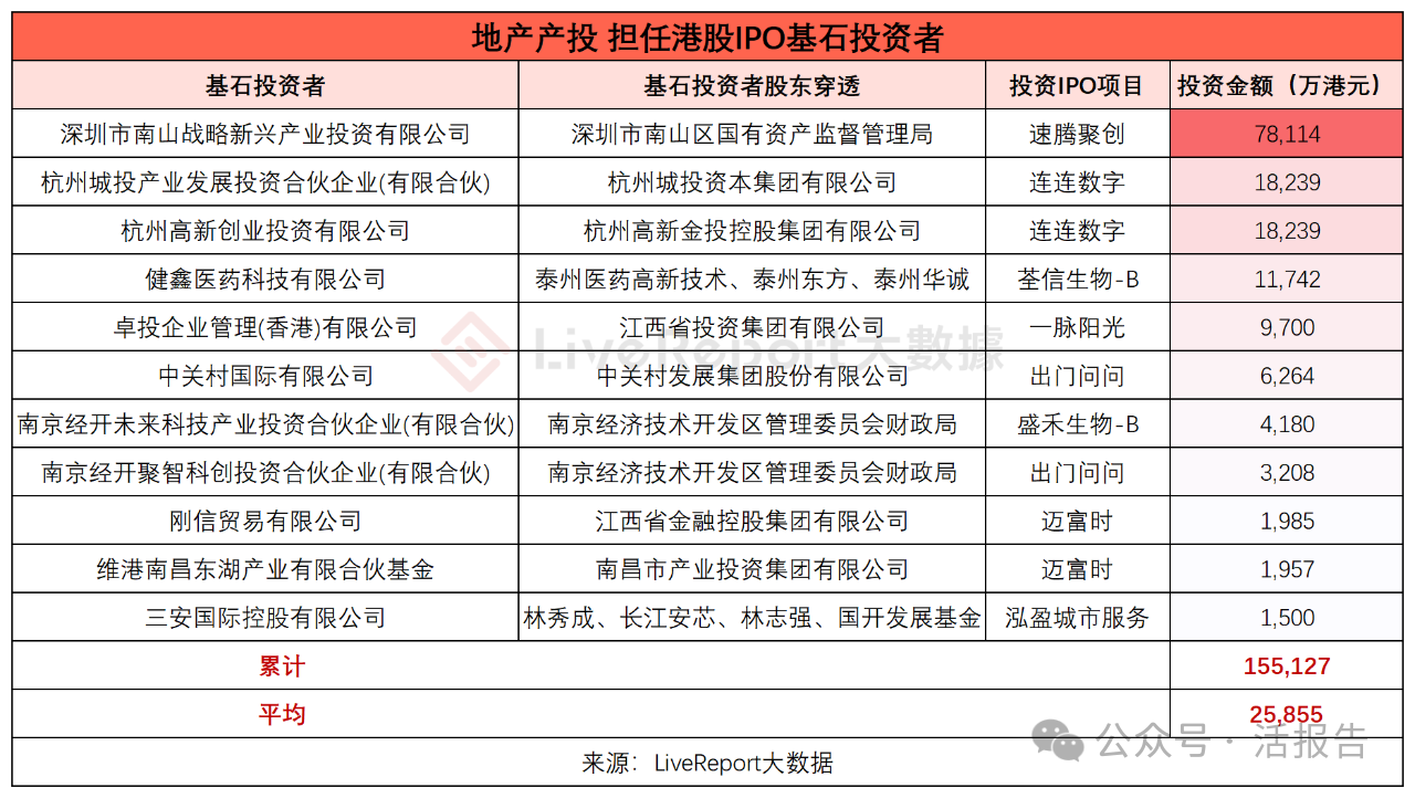 据LiveReport大数据统计,截至2024年6月4日,有11家地方产投行为港股IPO的基石投资者,投资金额高达15.5亿港元,占总基石投资金额的比例抵达58%。
