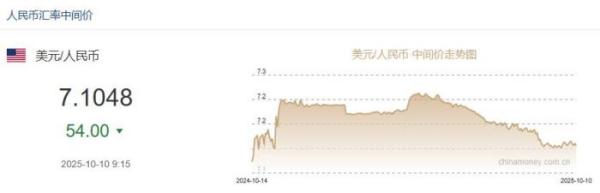 恒信贵金属有限公司中国网是国务院新闻办公室领导据中海外汇业务核心网站新闻,中邦群众银行授权中海外汇业务核心颁发,2025年10月10日银行间外汇商场群众币汇率中央价为:1美元对群众币7.1048元,上调54个基点。