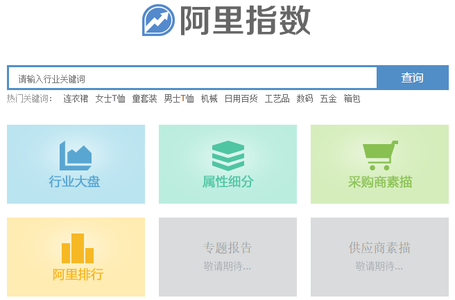点击进入阿里指数,正在顶部能够拣选类目,拣选杀青之后就能够看到所选类目标行业大盘、属性细分、采购商素描和阿里排行。