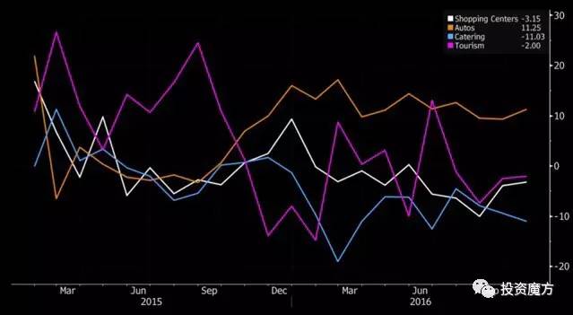 银联智策从中邦紧要的付出搜集收罗数据,追踪买家身份、置备对象和付出位置。他们操纵这一数据来汇编指数,追踪从地产到旅馆的各行各业。最新的数据显示,可驾驭开支加快拉长——10月份餐馆和华侈旅馆指数均热烈走高。地产指数略微下滑,暗指政府的房地产调控举措恐怕起先爆发影响了,特别是正在一线都邑。